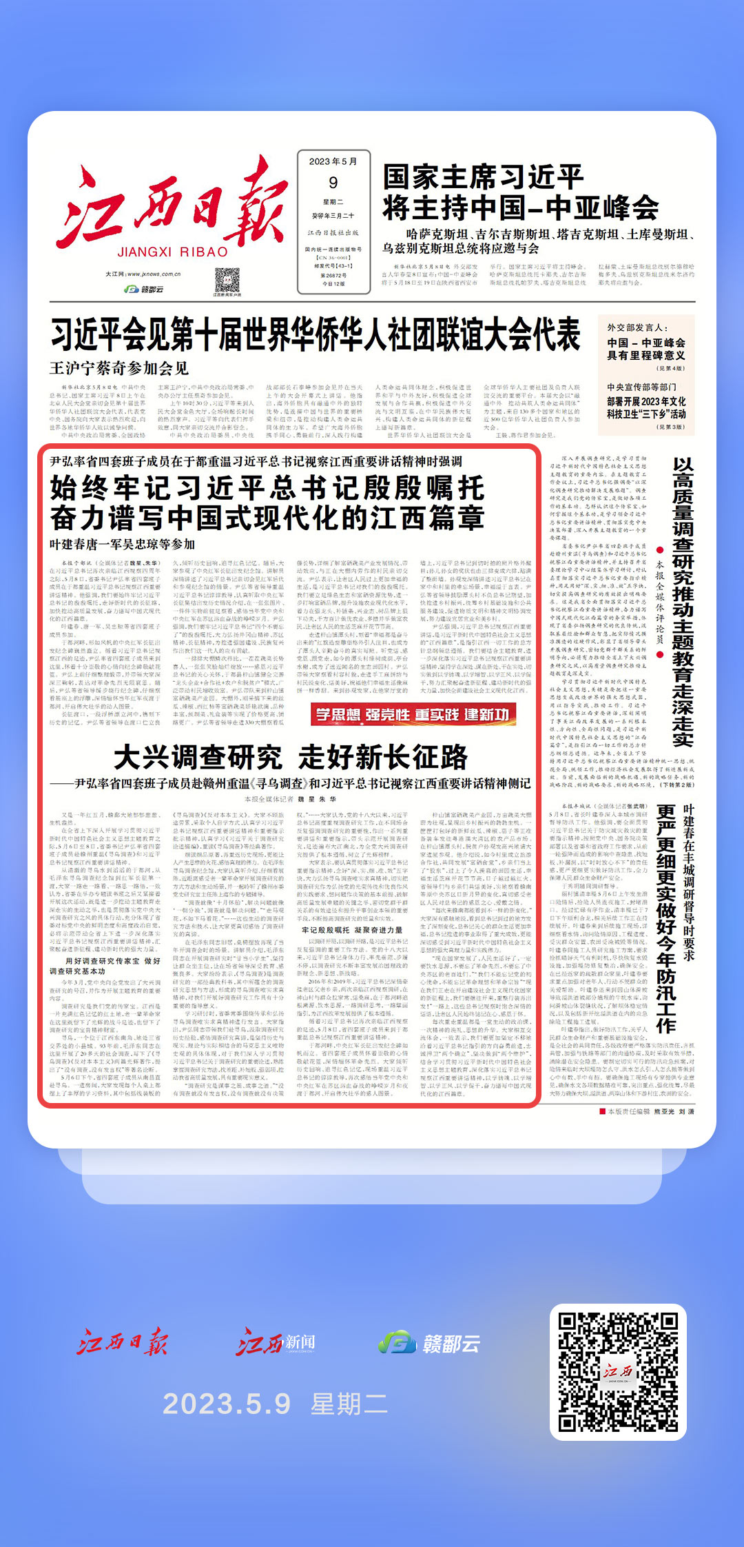 在全省上下深入開展學習貫徹習近平新時代中國特色社會主義思想主題教育之際,5月6日至8日,省委書記尹弘率省四套班子成員赴贛州重溫《尋烏調查》和習近平總書記視察江西重要講話精神。