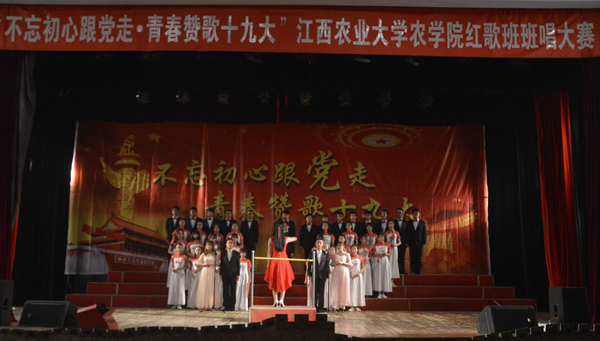 12月10日晚上,農(nóng)學(xué)院在大禮堂舉行“不忘初心跟黨走,青春贊歌十九大”紅歌班班唱大賽決賽。校團(tuán)委、農(nóng)學(xué)院負(fù)責(zé)人,學(xué)院班主任代表,校學(xué)生會(huì)負(fù)責(zé)人,兄弟學(xué)院團(tuán)委、學(xué)生會(huì)代表和農(nóng)學(xué)院1200余名學(xué)生觀看了決賽。