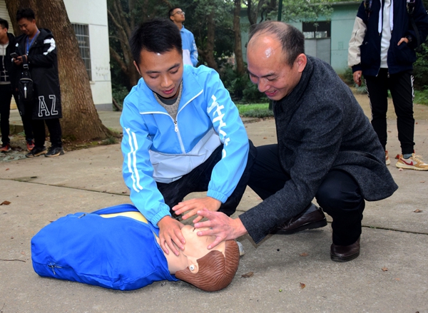 在普及“心肺復蘇”技能活動中,校醫院瞿運秋醫生為師生講解“心肺復蘇”基本知識,現場示范動作要領,指導師生操作練習了“心肺復蘇”技能。