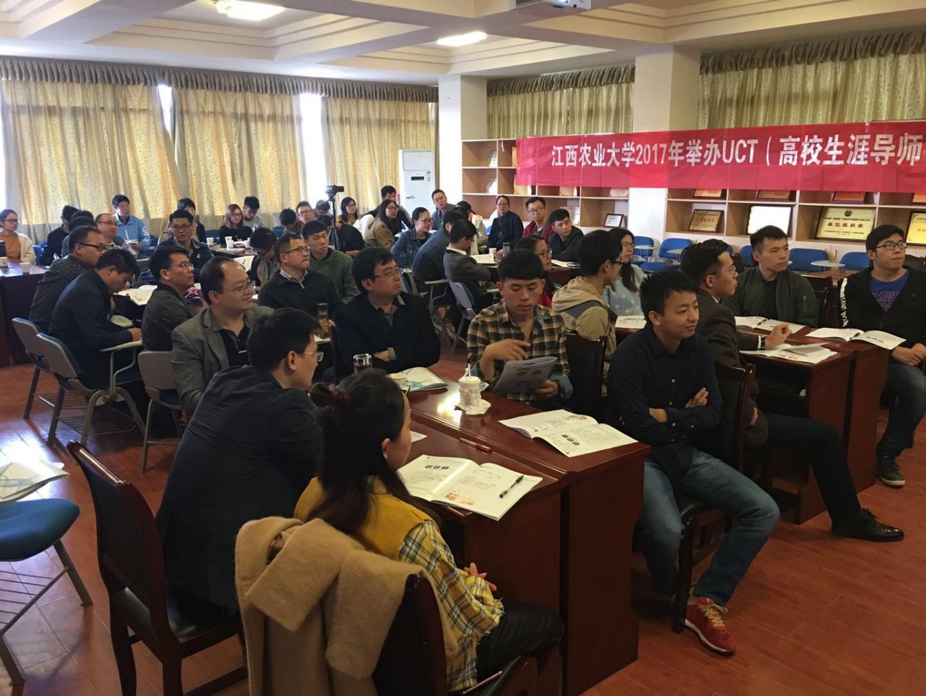 10月22日上午,招就處舉辦了2017年UCT(高校生涯導師)課程技能提升培訓班。63名本學期任大學生職業生涯規劃與就業指導課教學的老師參加培訓,仁能達教育科技有限公司研發總監謝偉導師應邀為學員講座。