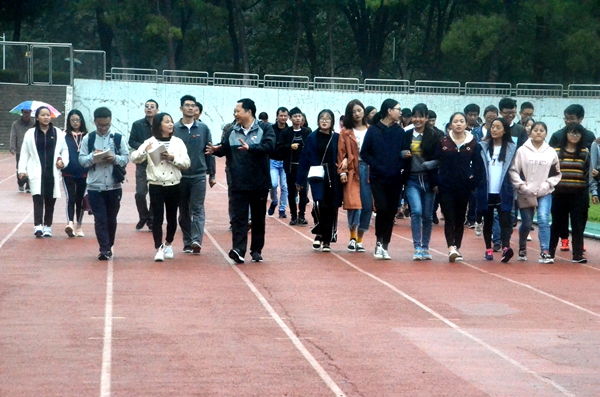上午九點,隨著支部書記熊紅華的一聲令下,全體成員邁著矯健步伐,攜手同行,繞田徑場開展健步行。師生們邊走邊交流,進一步增進了師生之間的聯系和友誼。活動結束后,大家紛紛表示會密切關注十九大盛況,并在今后的工作學習中認真學習貫徹落實好黨的十九大精神。