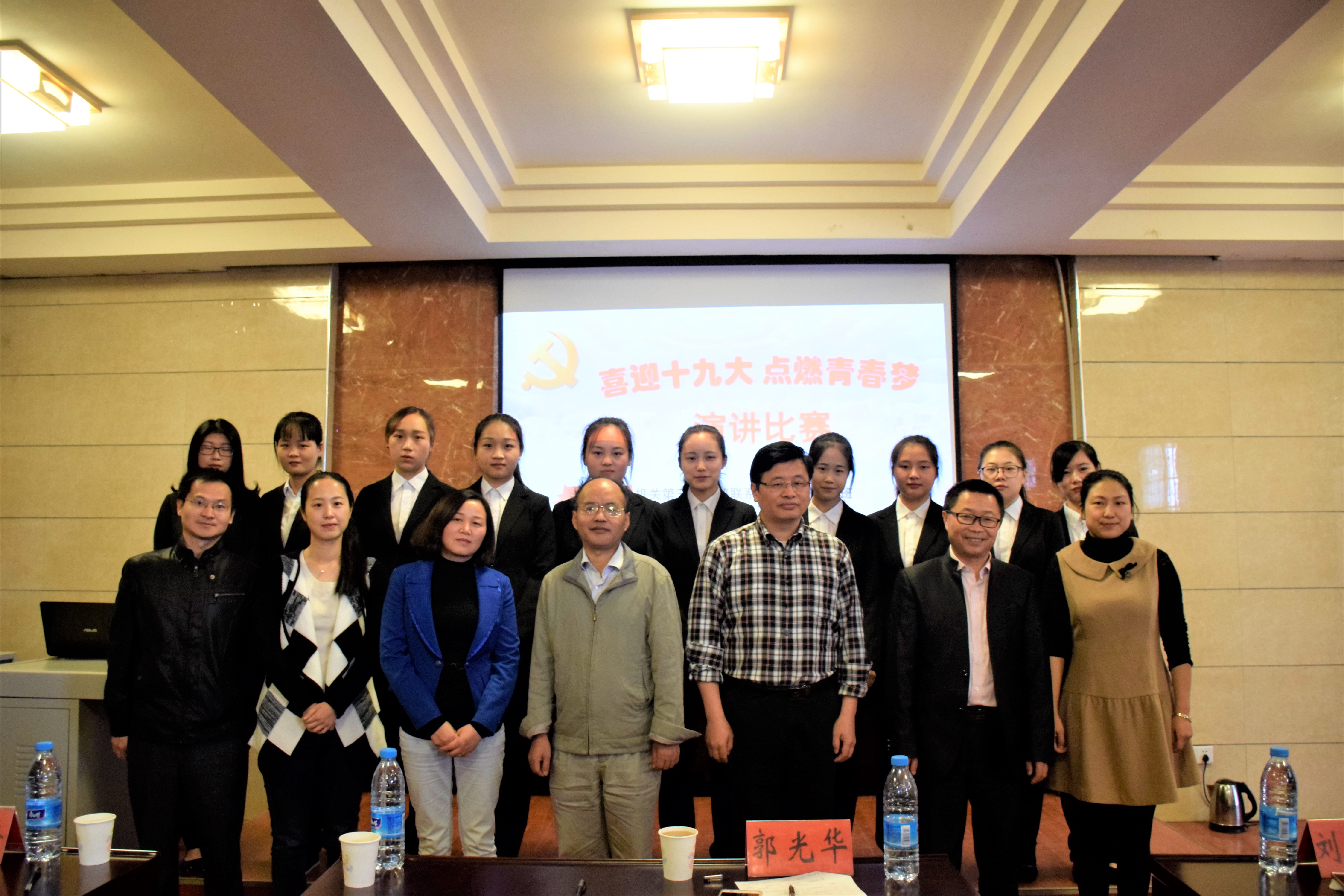 10月14日,在黨的十九大勝利召開前夕,為努力在青年學生中營造喜迎黨的十九大的濃郁氛圍,切實加強對青年學生的思想引領(lǐng),進一步推進支部聯(lián)系班級活動取得實效,機關(guān)第三黨支部聯(lián)合經(jīng)濟管理學院黨委,配合聯(lián)系班級財務(wù)管理1601班成功舉辦“喜迎十九大,點燃青春夢”主題演講比賽。機關(guān)第三黨支部部分成員、經(jīng)濟管理學院黨委領(lǐng)導和財務(wù)管理1601班班主任觀看比賽并擔任評委。