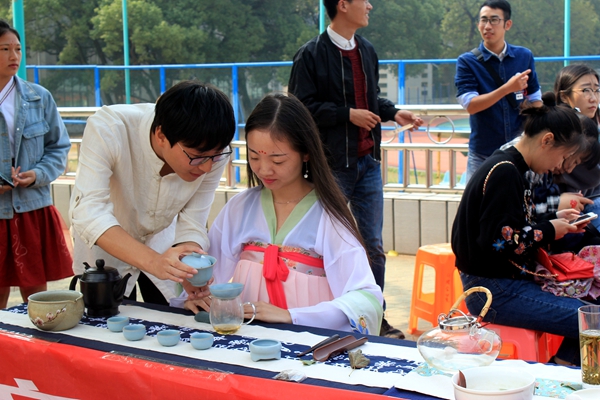 活動以提升大學(xué)生民族文化自覺、增強大學(xué)生民族文化自信為主旨,設(shè)置了“現(xiàn)學(xué)中國結(jié)和剪紙”、“體驗漢服拍美照”、“書法和茶藝展示”、“答題贏獎品”等一系列環(huán)節(jié),以多種形式將我國傳統(tǒng)文化精粹與傳統(tǒng)文化知識融入到各種趣味活動當(dāng)中,充分展示了中華傳統(tǒng)文化的親和力、吸引力和感染力。