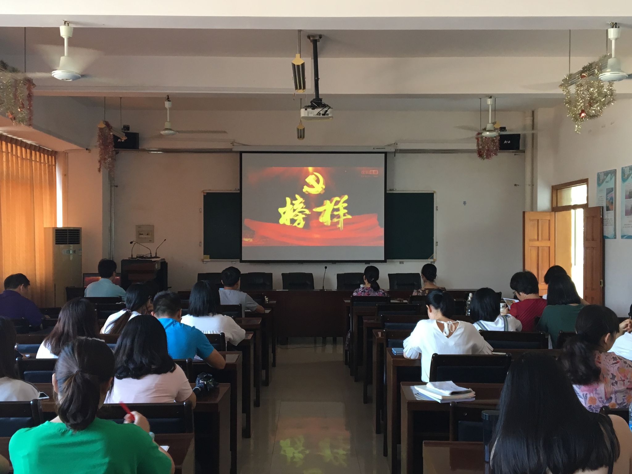 10月10日下午,外國語學(xué)院黨支部開展黨員活動日主題教育活動,收看由中央組織部、中央電視臺聯(lián)合錄制的專題節(jié)目《榜樣》,學(xué)習(xí)榜樣精神,傳遞榜樣力量,喜迎黨的十九大。外國語學(xué)院黨委書記肖友群主持會議,外國語學(xué)院教工、學(xué)生黨員全員參加。