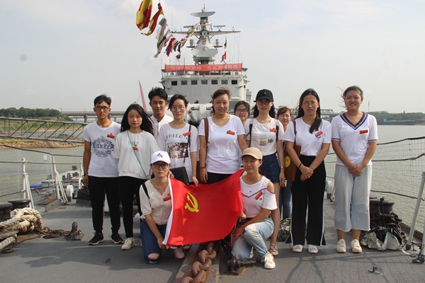 本次黨課以“觀跡識昔,明志鑒學”為主題,通過組織學生黨員和主要學生干部參觀南昌艦和建軍雕塑廣場。在南昌艦上,學生支部老師引導大家參觀了炮臺、水兵艙、彈藥艙、駕駛室等,并以南昌艦艇官兵協同作戰案例為大家講解了團隊合作和紀律的重要性。在建軍雕塑廣場,學生支部老師一邊帶領學生黨員參觀雕像,一邊為學生講解雕像含義及人民軍隊光輝發展歷程,使黨員和學生干部深刻了解我國人民軍隊建立沿革,體會人民軍隊的強大凝聚力和頑強拼搏、勇于犧牲的革命精神。