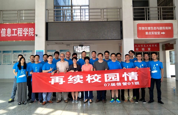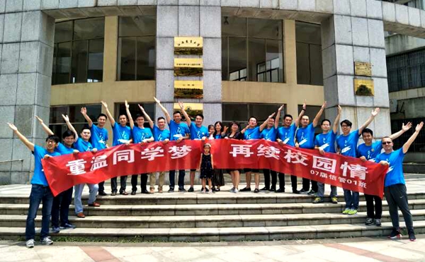 6月17日,計(jì)信學(xué)院信管031班校友齊聚母校,與老師歡聚一堂,舉行畢業(yè)十周年歡聚活動。學(xué)院黨政領(lǐng)導(dǎo)參加。聚會以“重溫同學(xué)夢,再續(xù)校園情”為主題,校友們追憶在母校期間的學(xué)習(xí)生活經(jīng)歷,難忘老師們的諄諄教誨,匯報(bào)自己工作成績,分享畢業(yè)后的幸福生活,深情地感恩母校的培養(yǎng)教育,并祝愿母校發(fā)展壯大。