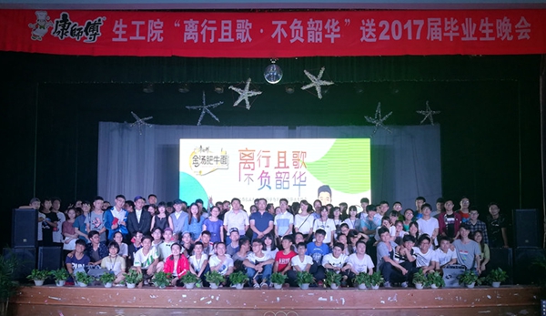 笑語歡聲,吹響畢業號角;載歌載舞,鐫刻離別思緒。5月11日晚七點,生工院“離行且歌,不負韶華”送2017屆畢業生晚會在校大禮堂舉行,生工院黨政領導、老師以及1000余名學生觀看了晚會。