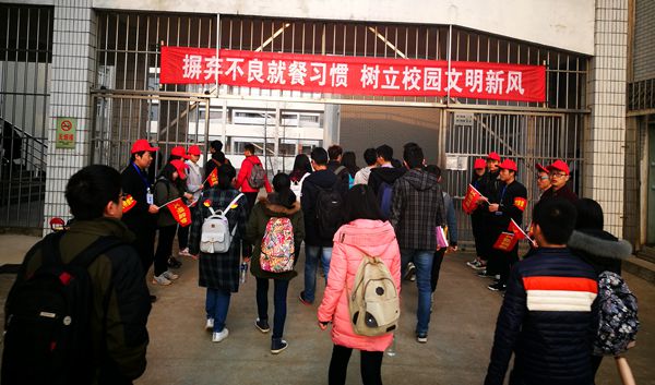摒棄不良就餐習(xí)慣,樹立校園文明新風(fēng)。近日,為營(yíng)造良好的學(xué)習(xí)環(huán)境,推進(jìn)校園文明建設(shè),校學(xué)工處開展了為期兩周的“拒絕早餐進(jìn)課堂”專項(xiàng)文明督查活動(dòng)。