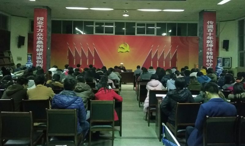 短短的一個半小時報告中,王錦祥同志深情回顧了學校110多年風雨歷程的發展史,重點講述了共產主義勞動大學時期的崢嶸歲月以及黨和國家領導人的親切關懷,情景再現了共產主義勞動大學時期依靠全校師生通過奉新大港砍伐毛竹、南湖農場圍湖造田、留校建設校舍等途徑籌備辦學物資和搞好基本建設的生動場景,向學生黨員傳遞了母校各個時期依靠群眾求勝利的光榮傳統。