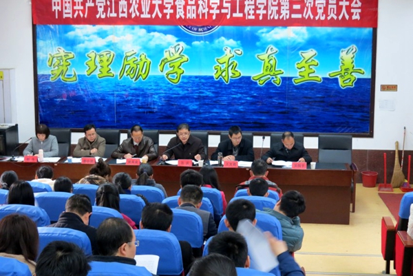 12月13日下午,食品科學與工程學院在理學院報告廳召開第三次黨員大會,校黨委委員、副校長黃英金,校機關黨委常務副書記彭小波應邀出席并指導大會。
