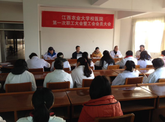 12月16日,校醫院第一屆職工大會暨工會會員大會召開。副校長黃英金、校工會主席桂花菊應邀出席。