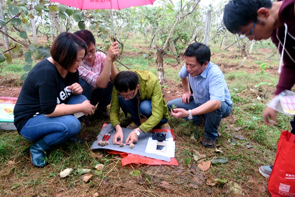 10月20日,農(nóng)業(yè)部科技發(fā)展中心植物新品種測(cè)試專家單飛彪博士對(duì)我校首席教授、農(nóng)學(xué)院徐小彪教授主持選育的獼猴桃新品種“贛綠”進(jìn)行田間現(xiàn)場(chǎng)考察與測(cè)試,并對(duì)獼猴桃特異種質(zhì)創(chuàng)新基地進(jìn)行了專題調(diào)研。“贛綠’獼猴桃是我校獼猴桃科研團(tuán)隊(duì)經(jīng)過近10年的努力通過實(shí)生選育途徑而成的剝皮型新品種,具有花瓣粉紅、果面白毛、果肉墨綠、易剝皮、超高Vc等顯著特征,單博士通過現(xiàn)場(chǎng)測(cè)試認(rèn)為,該品種相關(guān)性狀優(yōu)良,特色明顯,發(fā)展前景廣闊,并表示其可作為國(guó)家級(jí)植物新品種的候選品種。(農(nóng)學(xué)院)