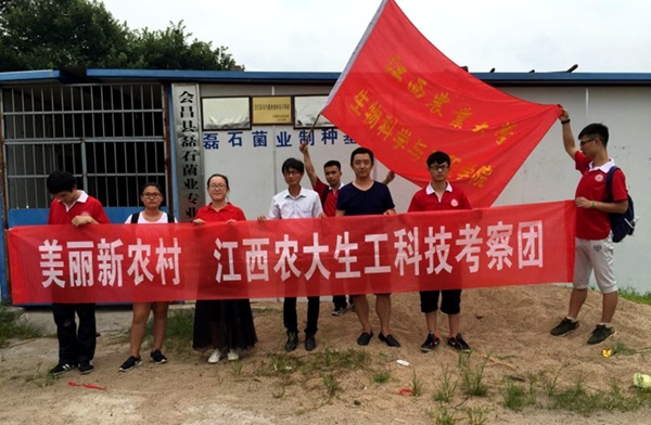 在會昌縣,生工學院大學生志愿者不僅走訪調研了會昌縣土壤保護、環境保護、污水處理在內的環境保護概況,也深入當地知名校友高云富一手創辦的菌業制種合作社,通過實地勞動,直觀地學習到了竹蓀培育的相關知識與生產流程,拓展了學生的專業實踐水平。在修水縣,志愿者們走訪了該縣古市鎮的各村落。通過在畫坪小學感受大山里孩子們的強烈求知欲、在省蘇維埃舊址感受革命軍人的不易、修水人民的愛國情懷,志愿者們在感恩的同時,亦覺得自身肩負重任,應有勇往直前的勇氣。