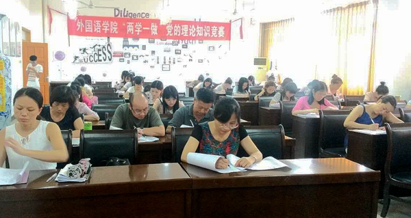在建黨95周年之際,為了扎實(shí)開展好“兩學(xué)一做”第二階段的學(xué)習(xí)研討活動(dòng),6月30日,外國(guó)語學(xué)院組織開展了“兩學(xué)一做”黨的理論知識(shí)競(jìng)賽活動(dòng)。學(xué)院全體教工黨員和學(xué)生黨員踴躍參與。