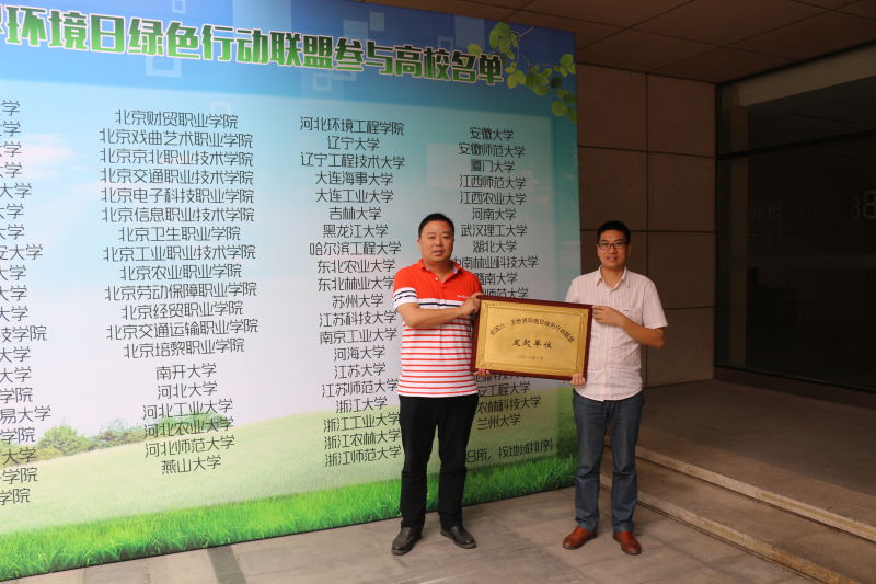 6月3日,我校作為全國百所“六?五”世界環境日主題活動高校的代表之一,在北京林業大學參加了由中國生態文明研究與促進會、全國保護母親河行動領導小組辦公室、北京林業大學和中國光大國際有限公司聯合主辦的“綠色發展,你我共創”——第四屆百所高校“六?五”世界環境日主題活動推進會,并接受“綠色發展,你我共創”百所高校發起單位授牌。