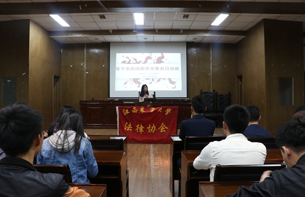 為響應黨中央關于推進全民國家安全教育的號召,提高大學生的安全知識素養(yǎng),4月15日晚,人文院大學生法律協(xié)會舉辦首個全民國家安全教育日講座。何愛華老師受邀演講。