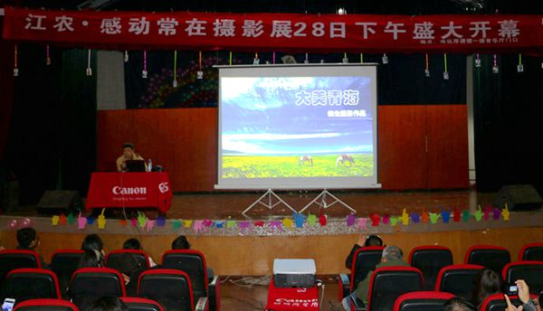 現(xiàn)場(chǎng)共設(shè)兩個(gè)展棚、兩名模特及十余臺(tái)佳能單反相機(jī)供學(xué)生使用,期間廣角鏡頭的運(yùn)用深受同學(xué)們的喜愛(ài),使同學(xué)們更好地理解了攝影。活動(dòng)還邀請(qǐng)中國(guó)攝影家協(xié)會(huì)理事周梅生老師作攝影專題講座,周老師分享了自身的攝影經(jīng)歷,向同學(xué)們展示了《大美青海》系列攝影作品,突出體現(xiàn)攝影的獨(dú)特魅力,并以“一半書(shū)房,一半路上”的理念闡釋對(duì)攝影的追求。(人文院 程磊 韋汝錚 胡婷)