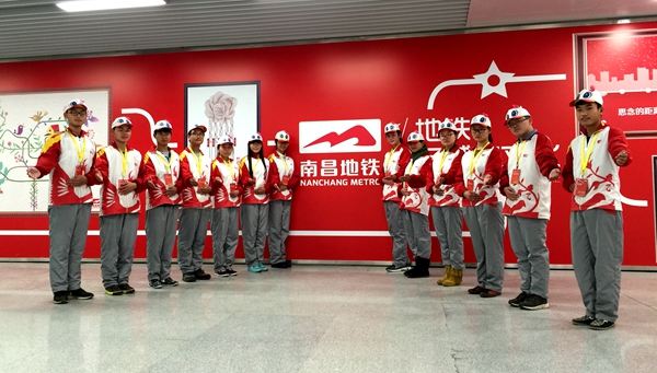 志愿服務期間,南昌地鐵公司負責人、南昌團市委負責人還看望了我校地鐵志愿者。志愿者們放棄新年小長假休息,在接受南昌地鐵工作人員相關培訓之后,穿上志愿者服裝走上各自的工作崗位。面對元旦小長假急速增長的客流和乘客對新投入使用的八一館站各項設施不熟悉等各種困難,志愿者們耐心細致地回答每一位乘客的提問,協助他們購買車票、辦理補票手續、為他們指路、引導。透過志愿者們熱情溫暖的微笑向每一位乘客傳遞了關心和問候。(校團委 許兵)