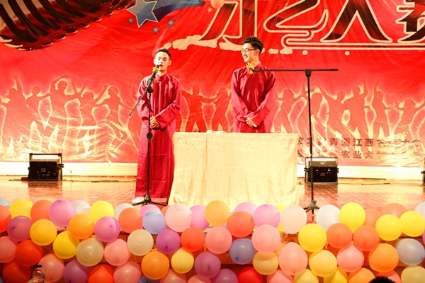 本場晚會的節(jié)目類型豐富多樣,涵蓋了歌曲演唱、舞蹈、相聲、小品和詩歌朗誦等多種藝術(shù)表現(xiàn)形式,為觀眾帶來了一場精彩的表演。來自法學(xué)1501班的汪賽和王糲淳帶來的相聲《我要旅游》以其幽默的風(fēng)格和十足的舞臺表現(xiàn)力獲得了評委和觀眾的一致好評,最終以88.67分的好成績摘得本次比賽的桂冠。(人文學(xué)院 陳杰 林楓)