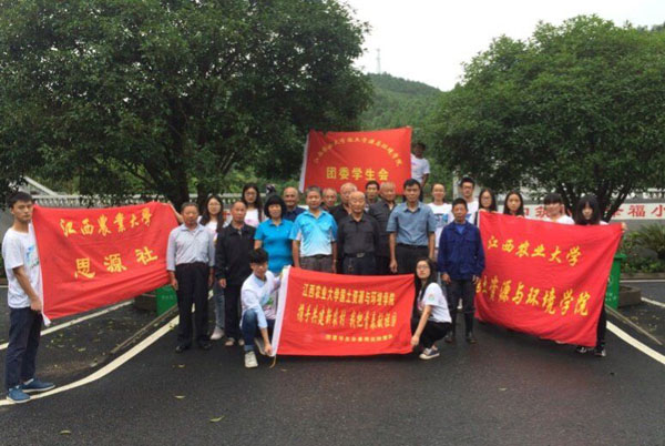 在上饒市上饒縣清水鄉,以國土學院團學干部和思源社學生社團代表組成的實踐營隊,開展了“攜手共建新農村,我把青春獻祖國”的暑期社會實踐服務與調研活動。活動以“志愿服務基層,譜寫青春華章”為主題,開展了走進養老院關愛孤寡老人、走進清水鄉老黨員憶農村新變化、走訪當地農戶了解農村的生活現狀、與當地大學生村官座談交流、參觀清水鄉農業高產示范田與藍莓基地以及與當地政府領導干部舉行“七七事變”七十八周年紀念儀式等活動,得到當地群眾與政府的熱烈歡迎和大力支持,并達成了國土院與上饒縣清水鄉政府長期實踐合作協議。