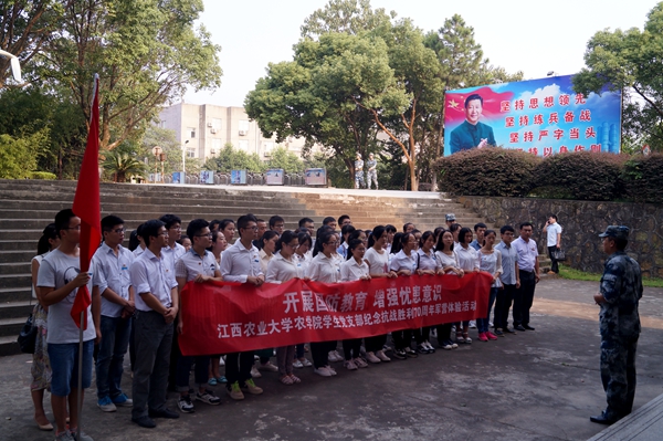 9月2日下午,為加強大學生國防教育,豐富大學生黨員組織生活,農學院組織學生黨員深入駐昌某部開展“開展國防教育,增強憂患意識”主題軍營體驗活動。