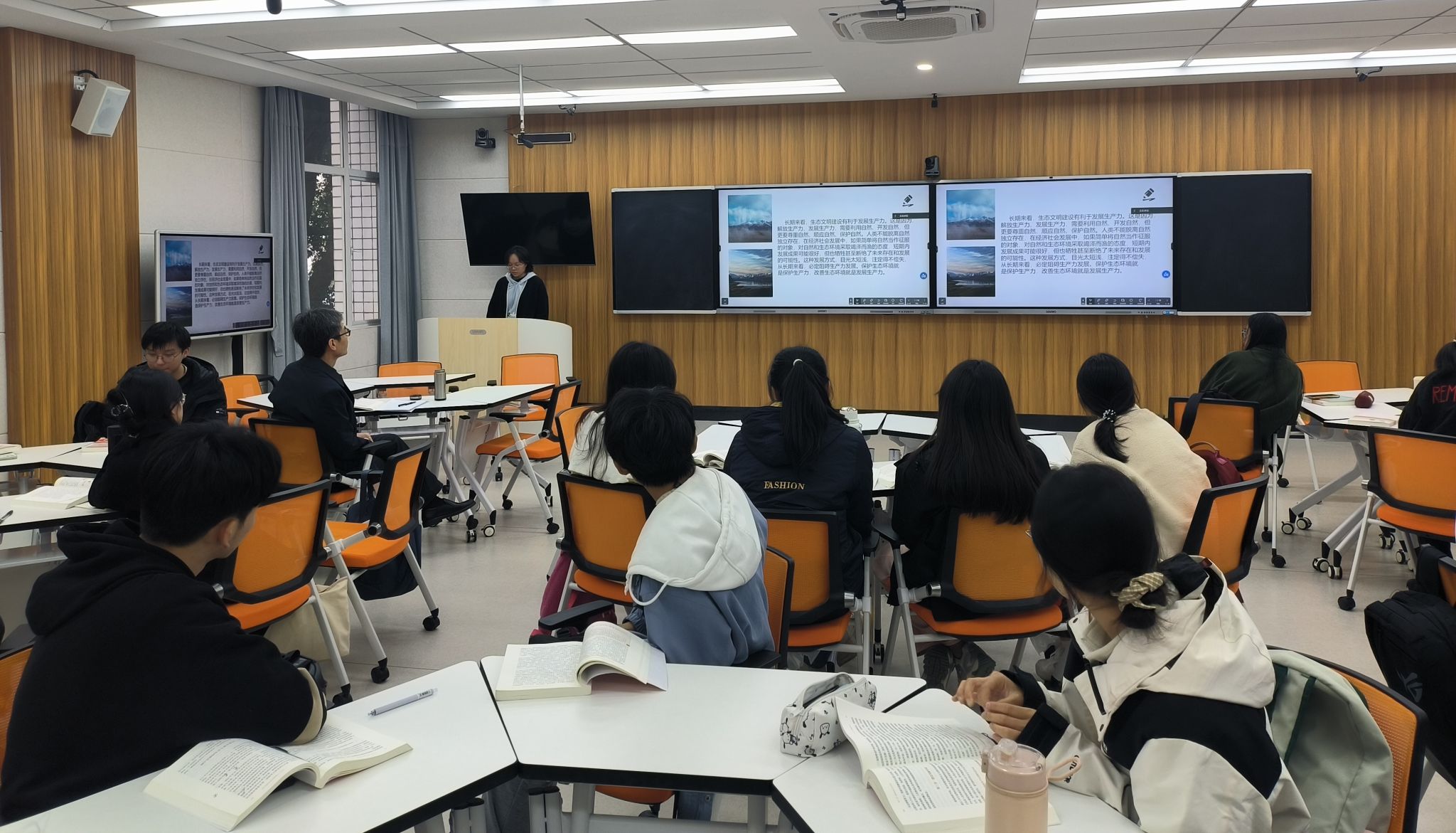 課堂上,同學們與兩位老師進行了互動交流,學生代表還圍繞建設美麗中國主題進行了分享。