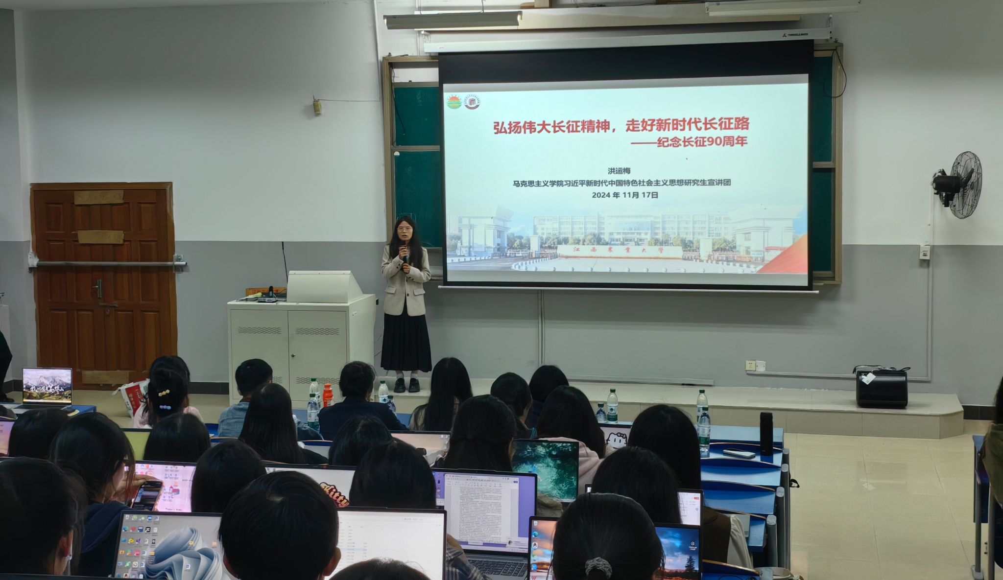 宣講團成員以《弘揚偉大長征精神,走好新時代長征路》為主題,通過鮮活的故事和翔實的數據,帶領同學們回顧了長征的艱難歷程和偉大勝利,深入剖析了長征精神的內涵,并結合身邊事例號召大家在新時代的長征路上,繼續發揚長征精神,勇于面對挑戰,為實現中華民族偉大復興貢獻力量。