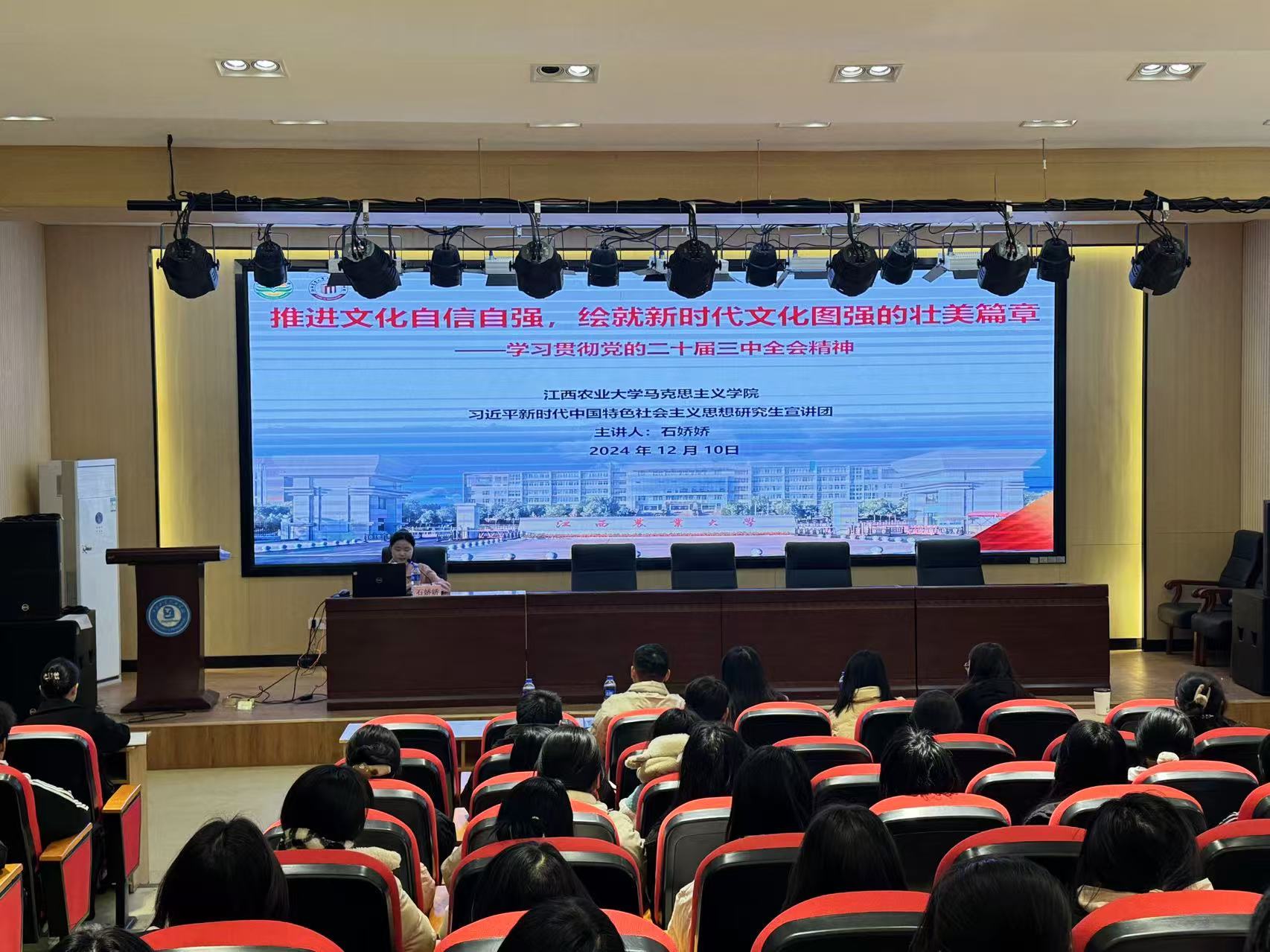 近日,馬克思主義學院習近平新時代中國特色社會主義思想研究生宣講團受邀赴江西工業技工學校宣講黨的二十屆三中全會精神。宣講團成員以“推進文化自信自強,繪就新時代文化圖強壯美篇章”為題作宣講。江西工業技工學校100余名師生參加宣講會。
