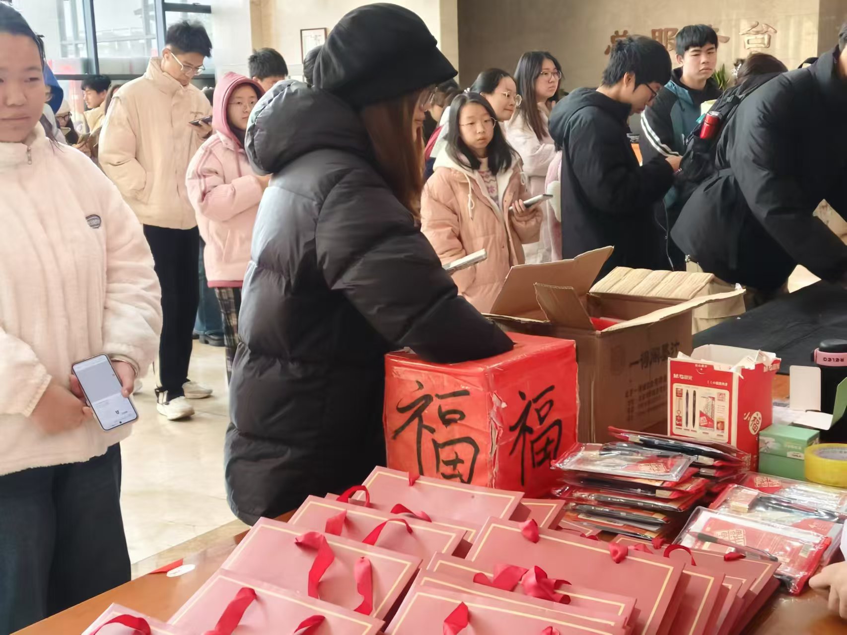 本次活動于本部圖書館和東區分館同時舉行,得到了廣大師生的熱情支持,現場共發放春聯、斗方、???、卷軸等近1000副。協會成員們積極參與組織,將寓意美好期許的一副副春聯和考研祝福送到師生手中,他們希望通過這種方式,為全校師生帶來新年的喜悅和溫暖,也為考研學子們送去力量和勇氣。