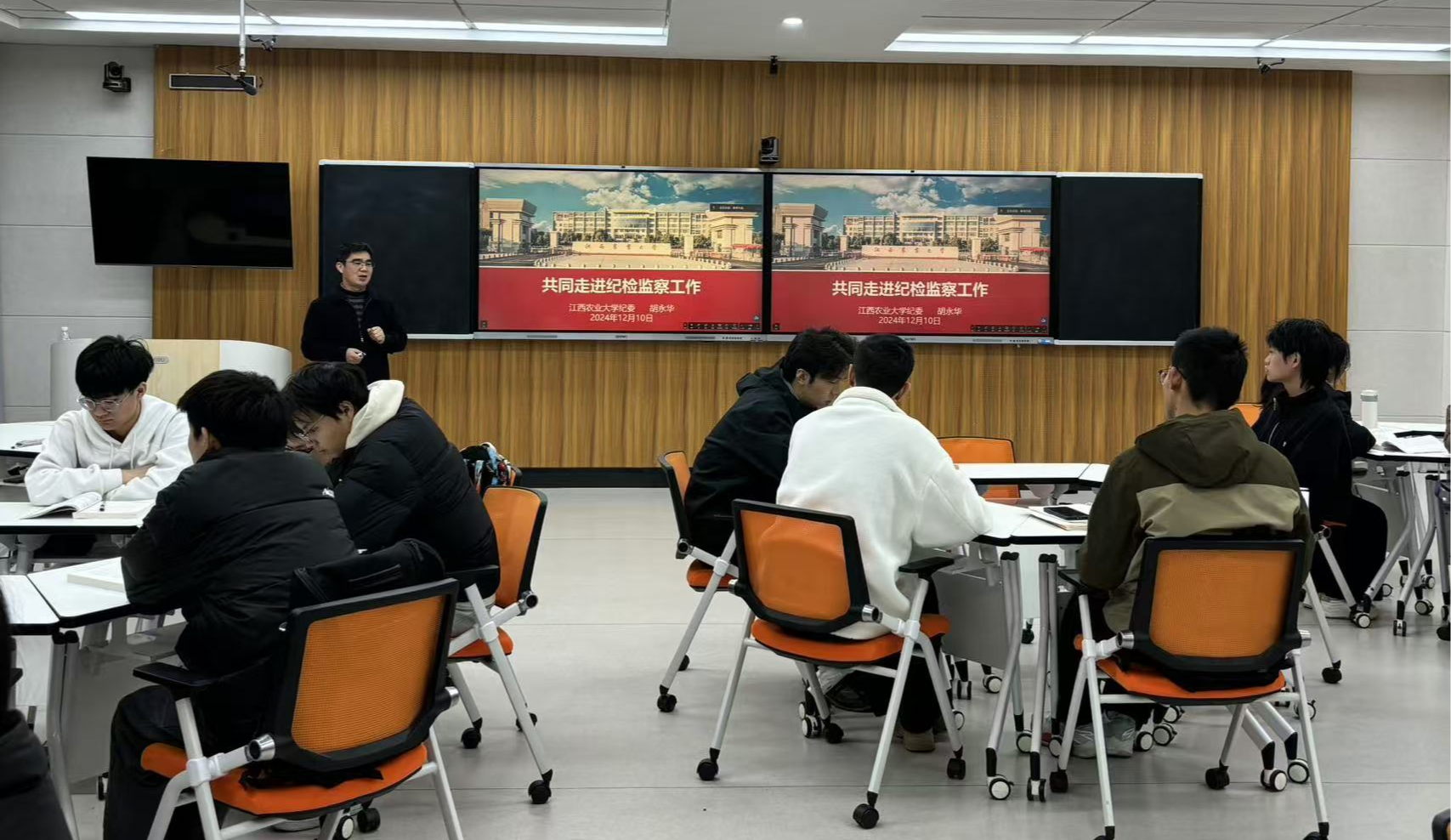 胡永華以紀(jì)委監(jiān)委的工作職責(zé)為切入點(diǎn),圍繞紀(jì)委與監(jiān)委的任務(wù)、流程等,結(jié)合中國共產(chǎn)黨推進(jìn)全面從嚴(yán)治黨、自我革命的具體舉措,讓同學(xué)們進(jìn)一步感受到全面從嚴(yán)治黨就在身邊。