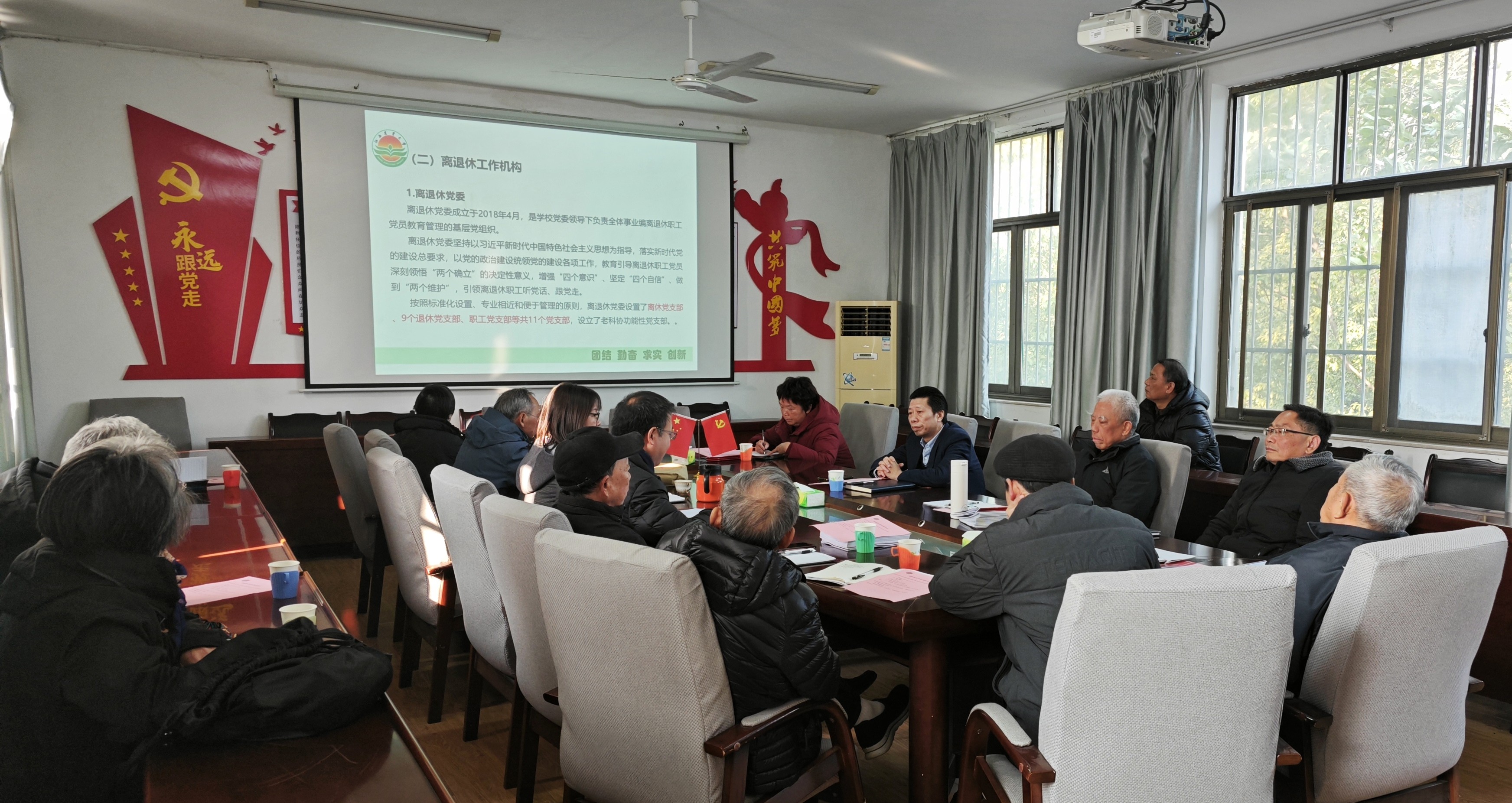 12月26日上午,副校長游金明到離退休工作處開展調研指導,并為離退休職工黨員講專題黨課。