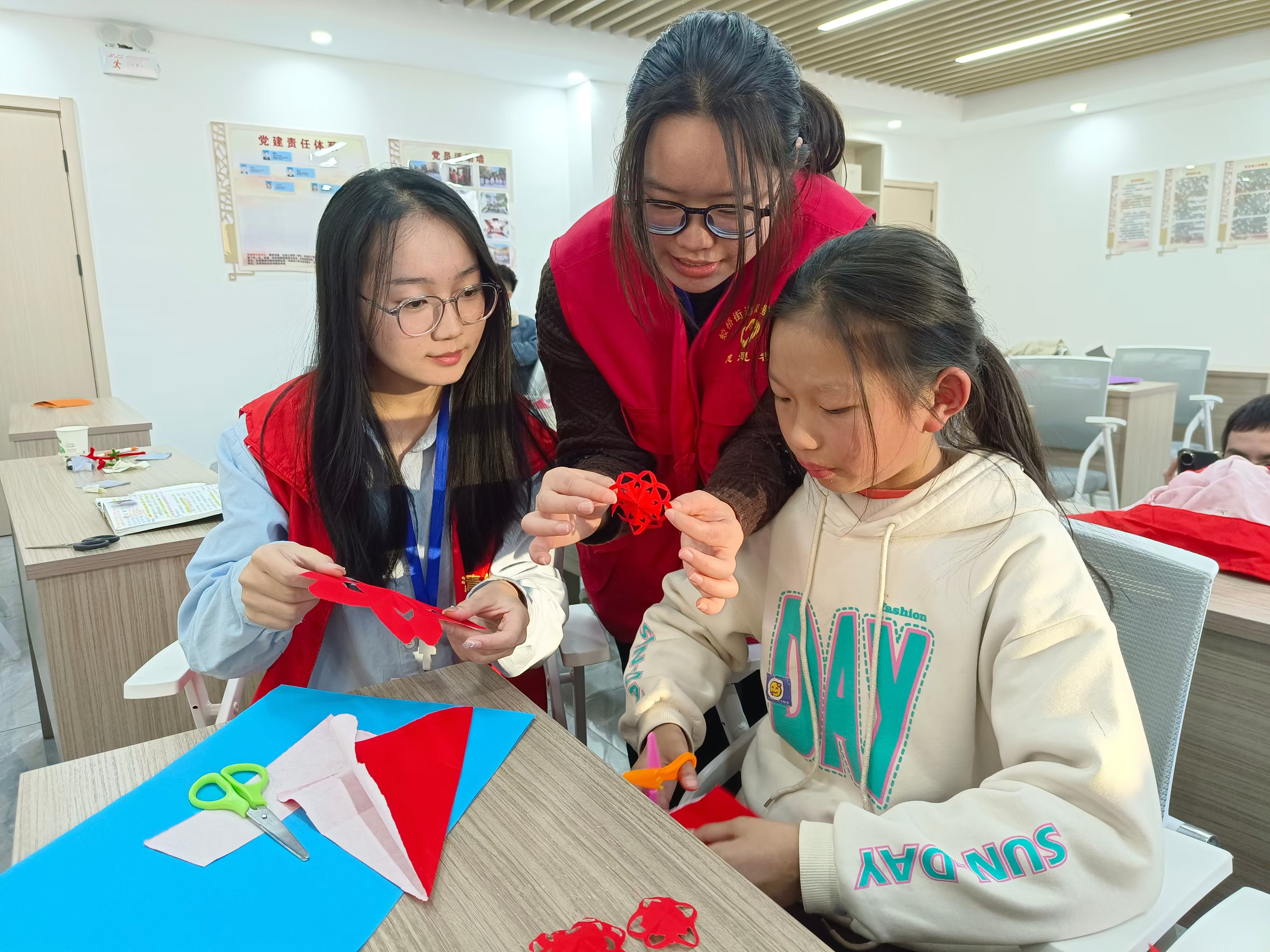弘揚傳統文化,增強文化自信。為傳承中華文化,讓小朋友們感受傳統文化魅力,志愿者們現場教授小朋友們掌握使用剪刀和紅紙的技藝,悉心指導創作富有傳統特色且充滿創意的窗花作品。這些成果充分展現了少年兒童對傳統文化的深厚熱愛與崇高尊重,進一步激發了他們投身文化傳承事業的遠大夢想。