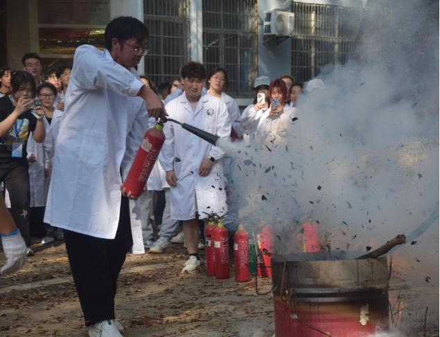 演練開始前,保衛(wèi)處綜治消防科對火災(zāi)發(fā)生的嚴(yán)重后果、火災(zāi)逃生指南、滅火器的使用、水帶的鋪設(shè)、水槍的連接以及消火栓的使用進(jìn)行了詳細(xì)講解,并進(jìn)行了現(xiàn)場示范操作。隨著消防警報(bào)響起,師生們從實(shí)驗(yàn)樓內(nèi)沿著消防疏散通道快速有序撤離至安全地帶,真實(shí)模擬突發(fā)火災(zāi)應(yīng)急逃生演練。同時(shí),現(xiàn)場還進(jìn)行了油盆滅火、室內(nèi)消火栓出水等實(shí)操教學(xué)。活動(dòng)中,全體教職和學(xué)生積極參與,有序配合,順利完成演練。