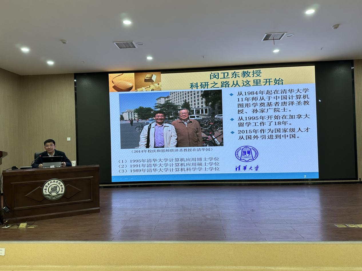 閔衛東以其淵博的專業知識和豐富的實踐經驗,深入淺出地剖析了新一代人工智能的核心技術、應用場景以及對社會、經濟和教育等多方面的深遠影響。講座開始,他通過生動的案例和詳實的數據,向大家展示了新一代人工智能在圖像識別、自然語言處理、智能駕駛等領域的突破性進展,系統梳理了人工智能技術的演進歷程,使在場師生對人工智能的現狀和未來發展趨勢有了更加清晰的認識。同時,閔衛東也客觀地分析了人工智能帶來的挑戰,如就業結構調整、數據隱私保護、算法偏見等問題,并提出了相應的應對策略和思考方向。
