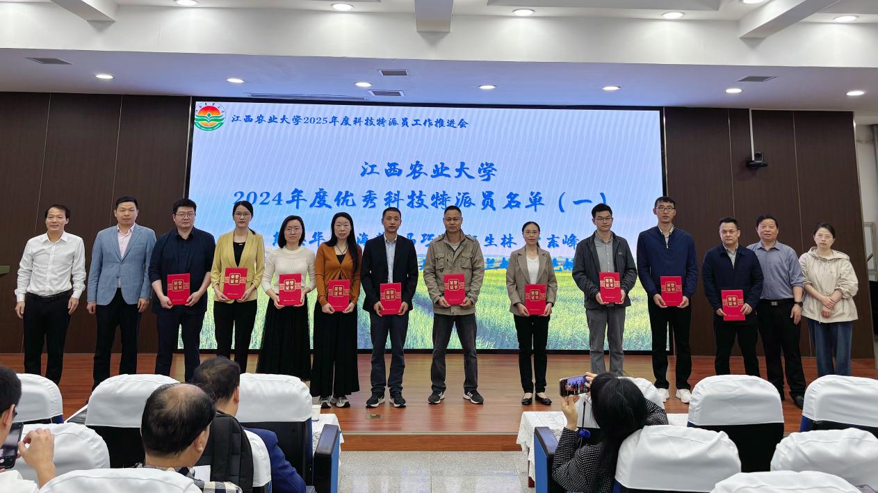 4月18日上午,由我校新農村發展研究院主辦的江西農業大學2025年度科技特派員工作推進會召開,組織部、宣傳部、科技處、人事處、財務處等相關部門負責人和全校200余名科技特派員參加了本次會議,副校長游金明出席并講話。