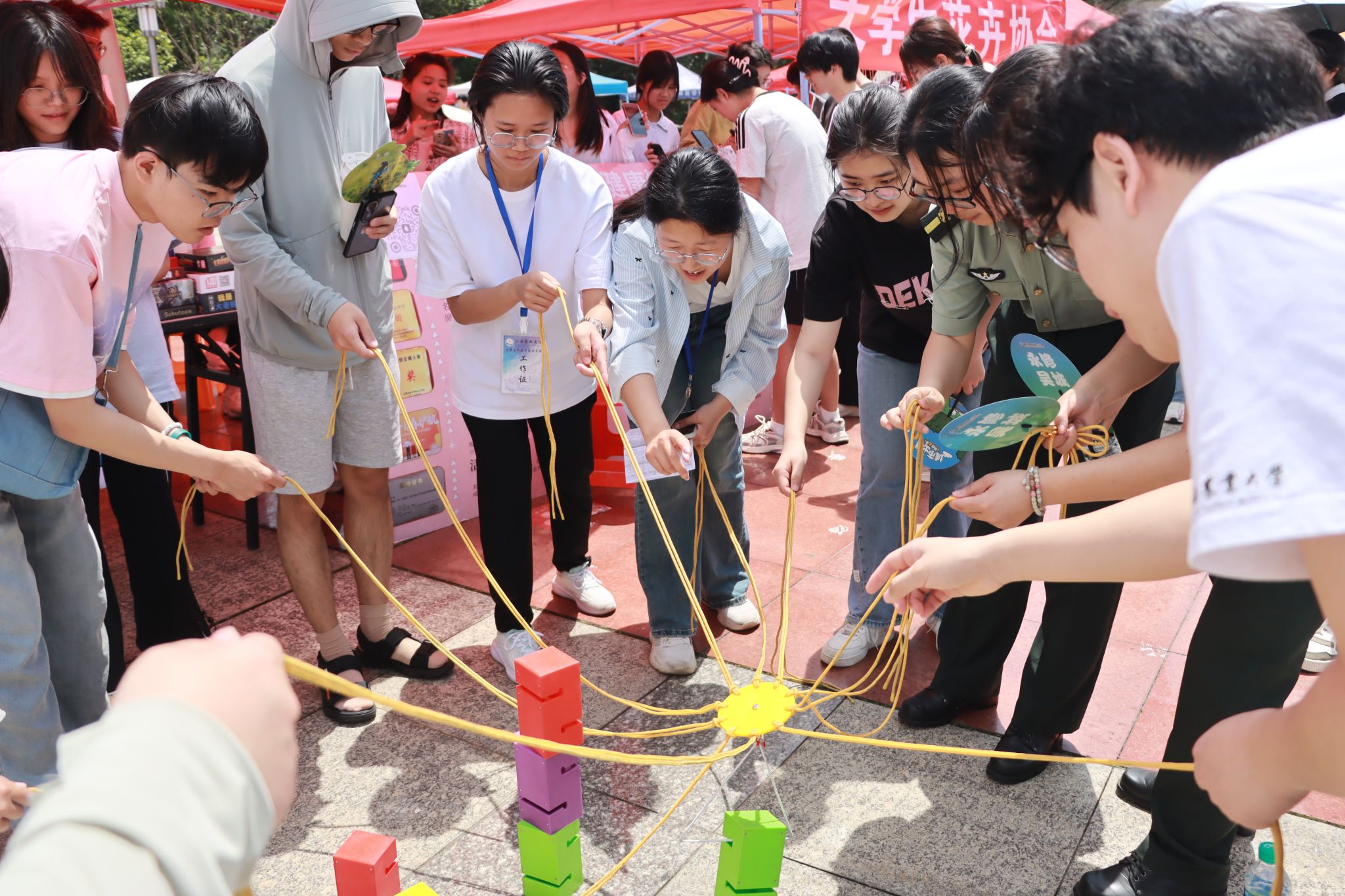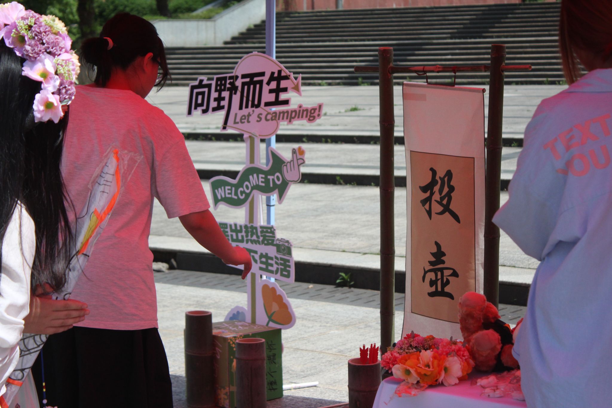 創(chuàng)意市集 社彩紛呈。各學(xué)生社團通過現(xiàn)場表演、互動體驗、模擬操作等形式,全方位展示社團特色。手工藝品制作、心理桌游、數(shù)字化設(shè)計作品展覽、攝影基礎(chǔ)教學(xué)、茶藝表演、趣味點歌、政策宣講、素質(zhì)拓展等活動精彩紛呈;非遺體驗區(qū)更是吸引眾多學(xué)生駐足,非遺漆扇、手工簪花、漢服拍照等特色活動,讓同學(xué)們近距離感受非遺文化的博大精深,感受傳統(tǒng)文化的獨特魅力。