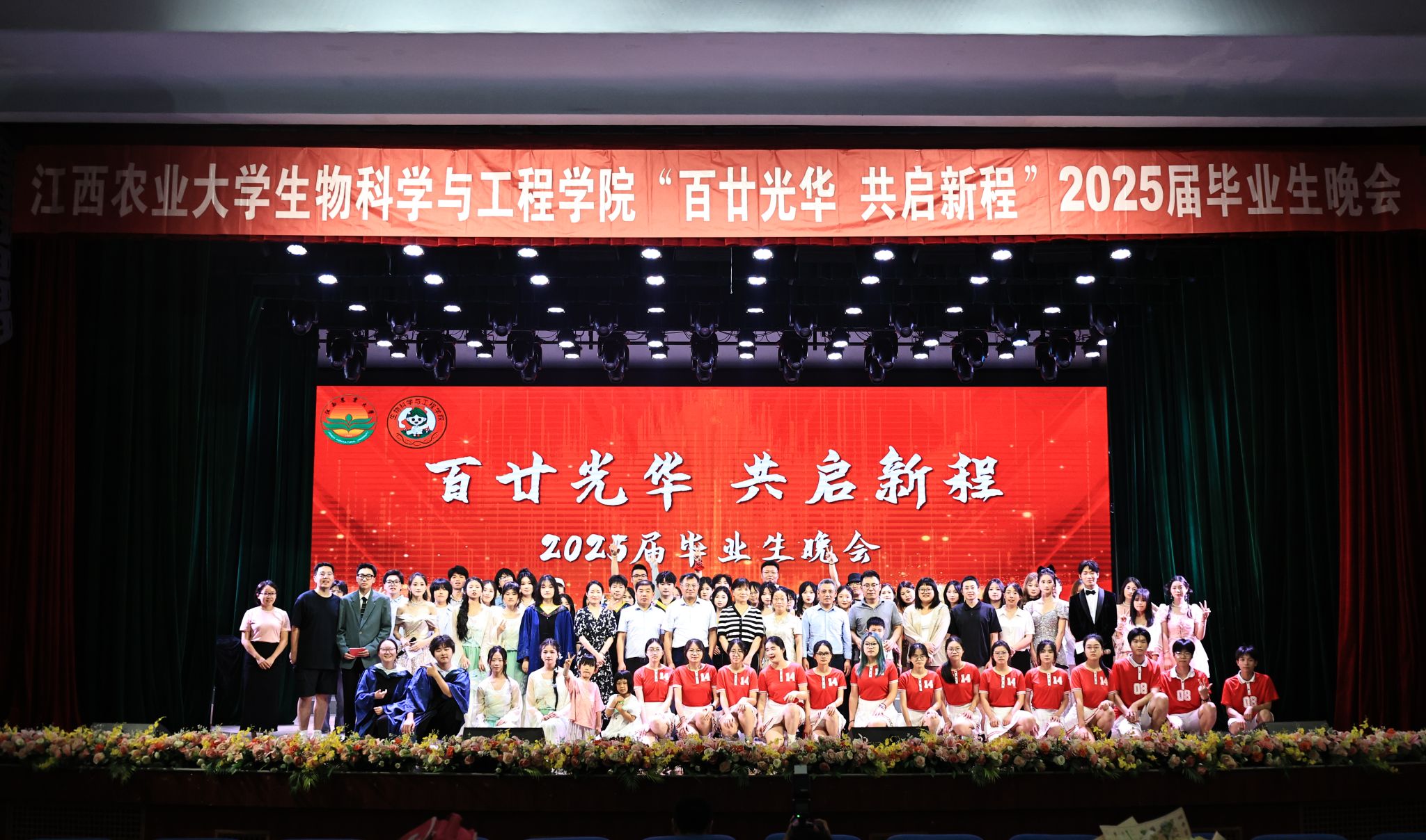 5月14日晚,生物科學與工程學院在北區大禮堂隆重舉辦2025屆“百廿光華 共啟新程”畢業晚會。生物科學與工程學院黨政領導班子成員、畢業班班主任、校友代表及全體2025屆畢業生齊聚一堂,共同見證這場充滿青春回憶與真摯祝福的畢業盛典。