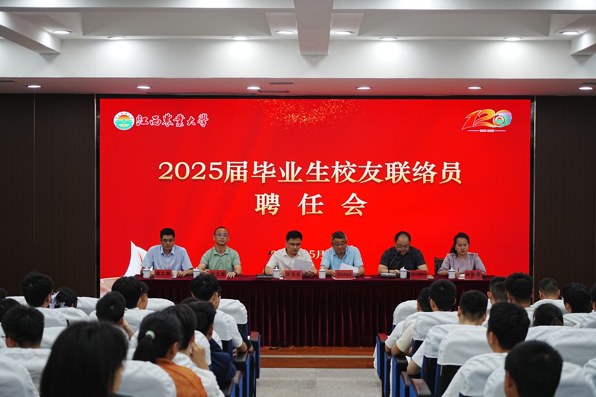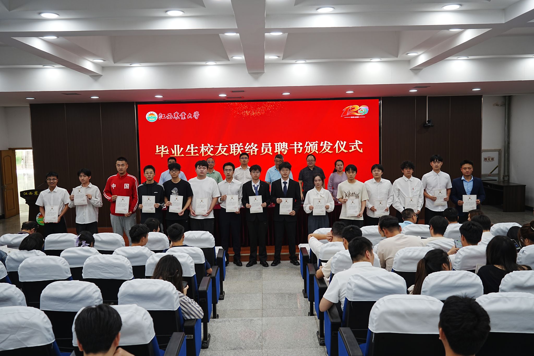 會議在莊嚴(yán)的國歌聲中拉開帷幕。招生就業(yè)處負(fù)責(zé)人宣讀了《關(guān)于聘任江西農(nóng)業(yè)大學(xué)2025屆畢業(yè)生校友聯(lián)絡(luò)員的通知》,151 名畢業(yè)生正式成為校友聯(lián)絡(luò)員。2025屆畢業(yè)生曹剛、叢超、江集寶作為受聘校友聯(lián)絡(luò)員代表發(fā)言,表達(dá)了對母校建校120周年的祝福和服務(wù)校友、奉獻(xiàn)社會的決心。周佳慧同學(xué)代表全體聯(lián)絡(luò)員宣讀《2025屆畢業(yè)生校友聯(lián)絡(luò)員倡議書》,共同許下青春行動誓言。校領(lǐng)導(dǎo)與相關(guān)部門負(fù)責(zé)人共同為聯(lián)絡(luò)員頒發(fā)聘書。