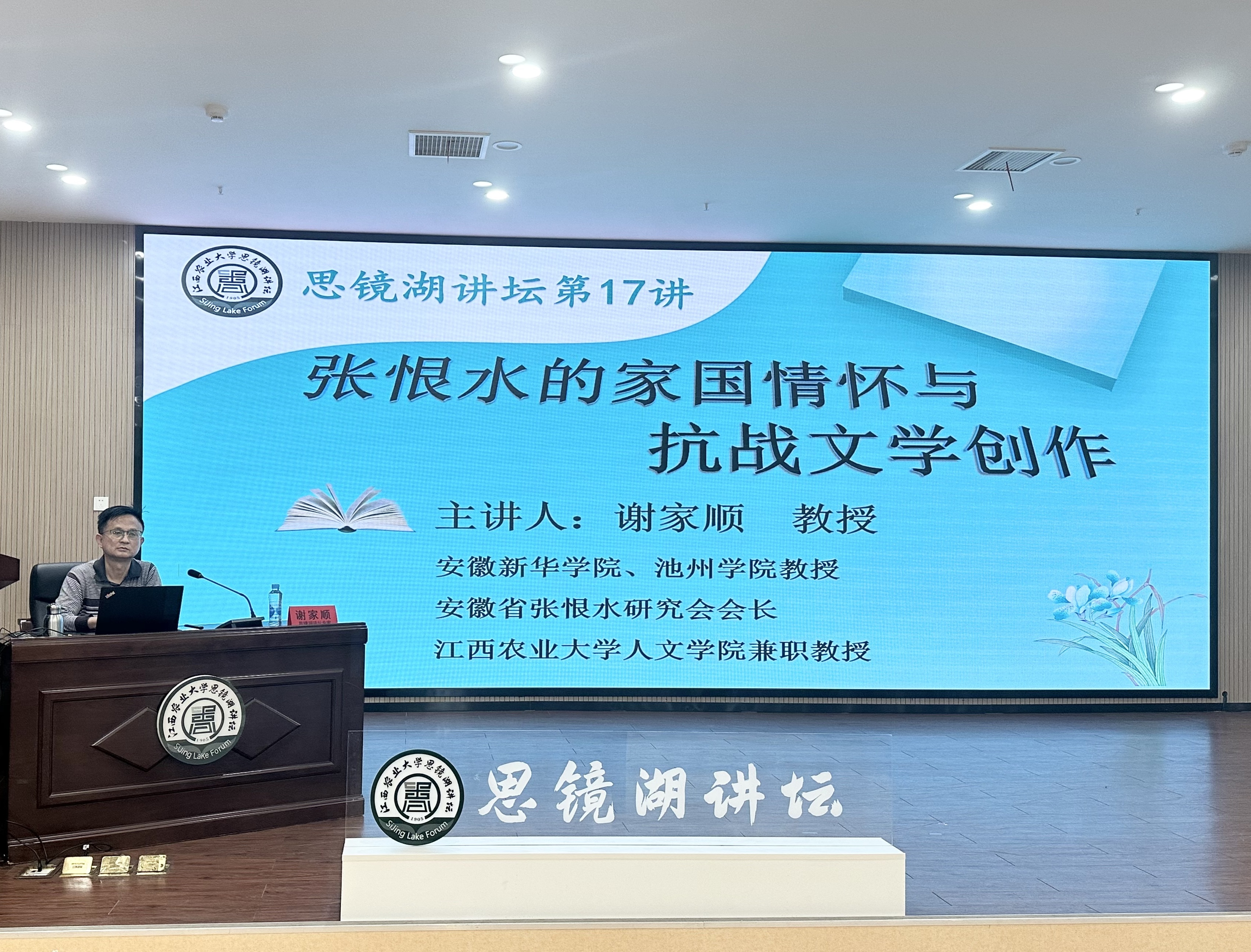 為紀念“中國抗戰小說第一人”張恨水先生誕辰130周年,深入挖掘抗戰文學的精神內涵,6月3日下午,思鏡湖講壇在圖書館一樓報告廳成功舉辦“張恨水的家國情懷與抗戰文學創作”專題講座。本次講座特邀安徽新華學院、池州學院教授、安徽省張恨水研究會會長謝家順擔任主講,吸引了全校100余名師生踴躍參與。