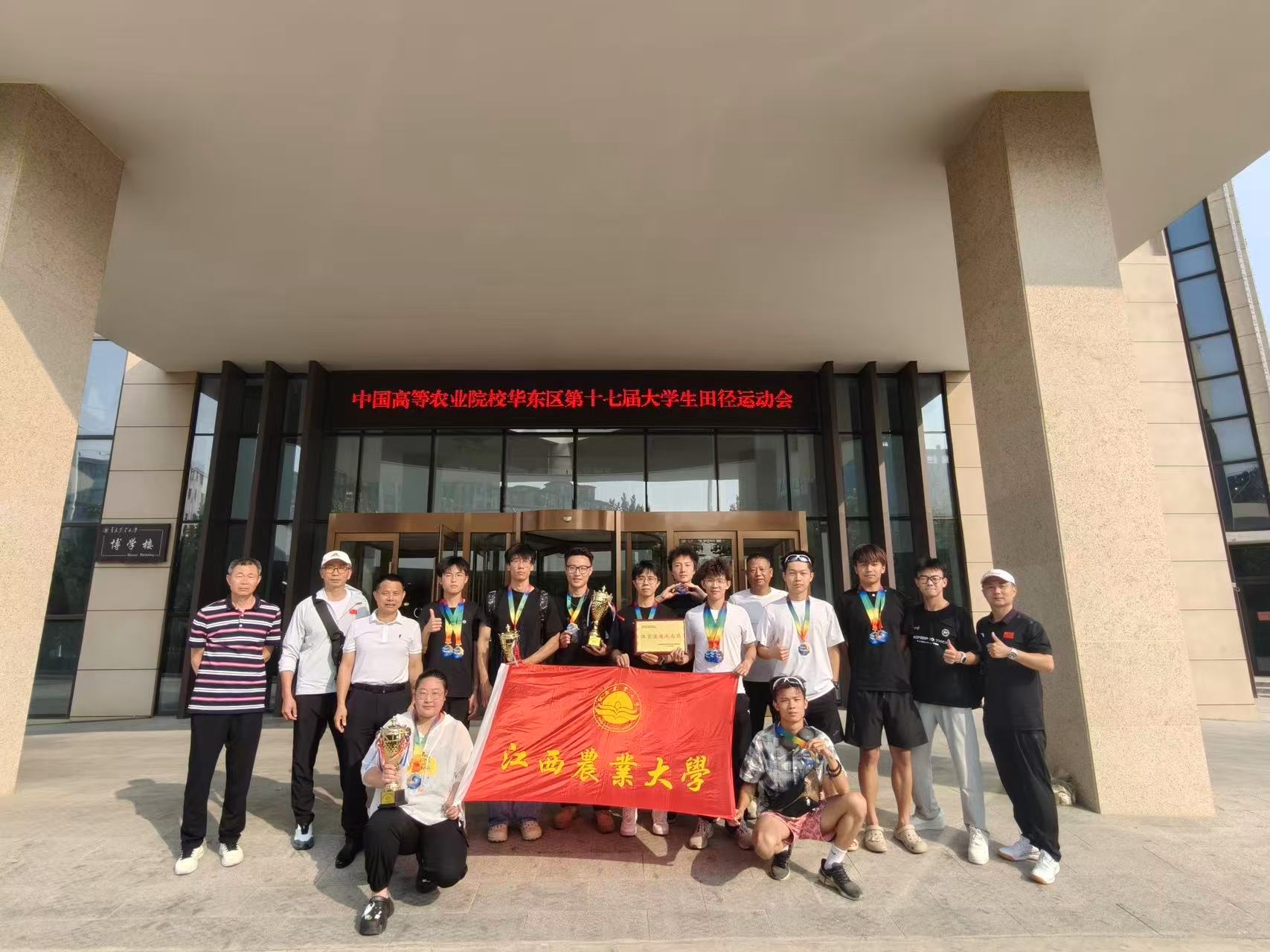 6月6日至10日,中國高等農業院校華東區第十七屆大學生田徑運動會在青島農業大學舉行。我校田徑代表隊11名運動員,在軍體部陳文斌、符業清、呂先波老師的帶領下參賽,經過兩天激烈角逐,最終獲得總分118分,奪得7金2銀1銅,以及男子甲組團體第三名等多個獎項,并打破多項校運會紀錄。同時,我校代表隊還被組委會授予“體育道德風尚獎”,符業清、陳文斌兩位老師榮獲“優秀教練員”,靳顯超、連易超、紀任新三名同學被評為“優秀運動員”。