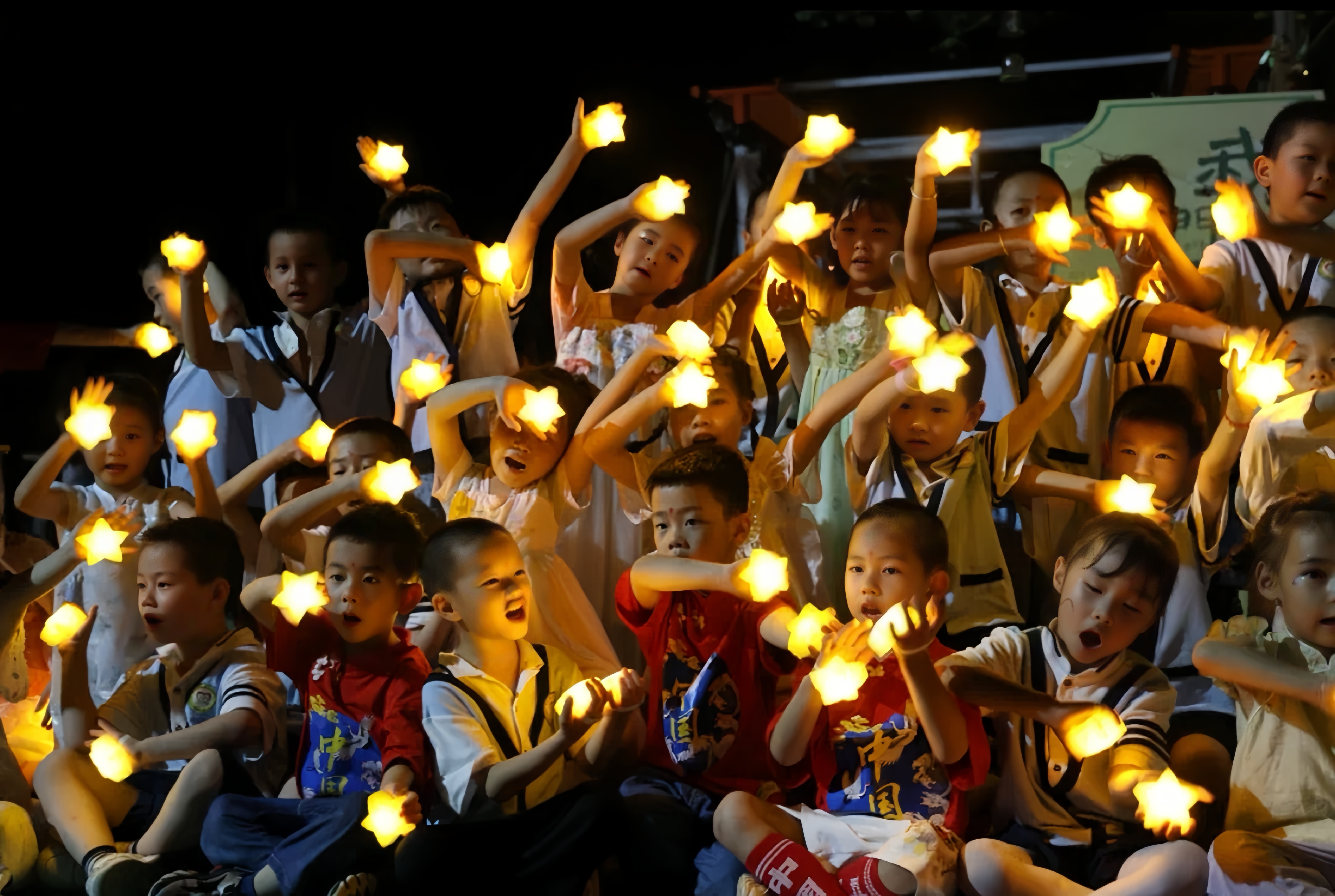 孩子們用不同的方式表達了自己的情感。親子舞蹈、親子合唱、魔術、朗誦、快板……每一個節目都充滿了孩子們的創意與活力,在星光與燈光的交織下,將整個夜晚妝點得更加絢爛多彩。在畢業典禮的尾聲部分,全體幼兒手持星星燈,唱響《一起長大的約定》。點點微光匯聚成銀河,照亮操場,也照亮孩子們對保育院的眷戀與對未來的憧憬,孩子們的聲音在夜空中回蕩著對未來的憧憬與期待,讓在場的每一個人都為之動容。