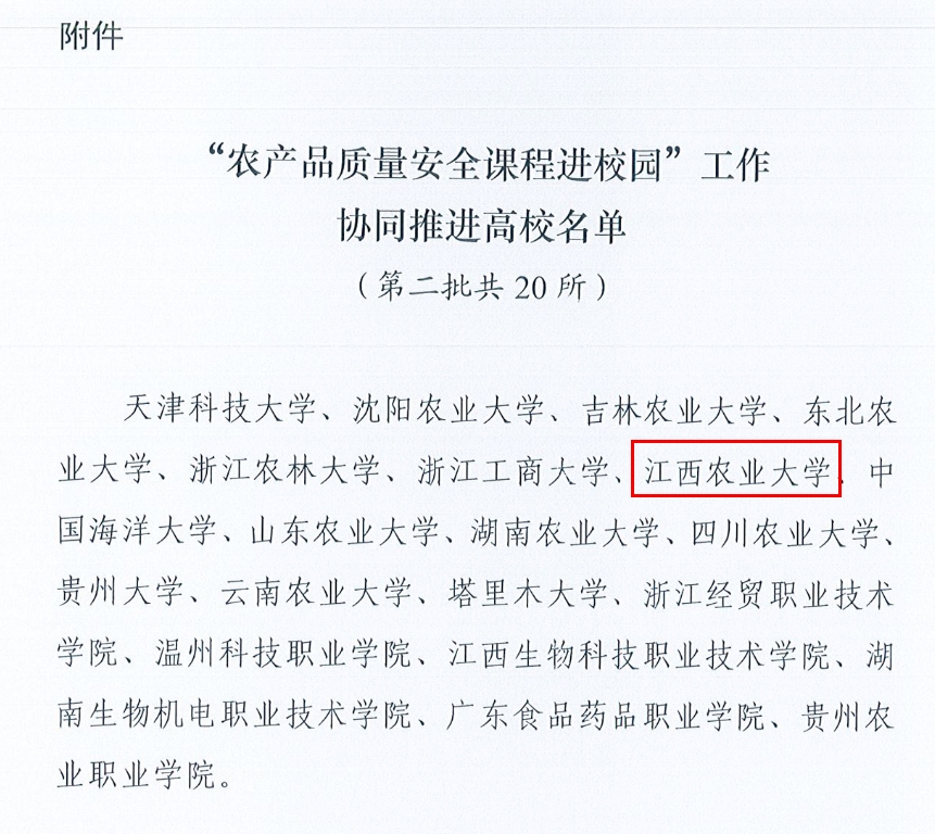 近日,第二批農業農村部“農產品質量安全課程進校園”項目揭曉,食品科學與工程學院鐘嬋副教授牽頭申報的“農產品質量與安全”課程成功入選。截至目前,全國共有33所試點高校獲此類項目。
