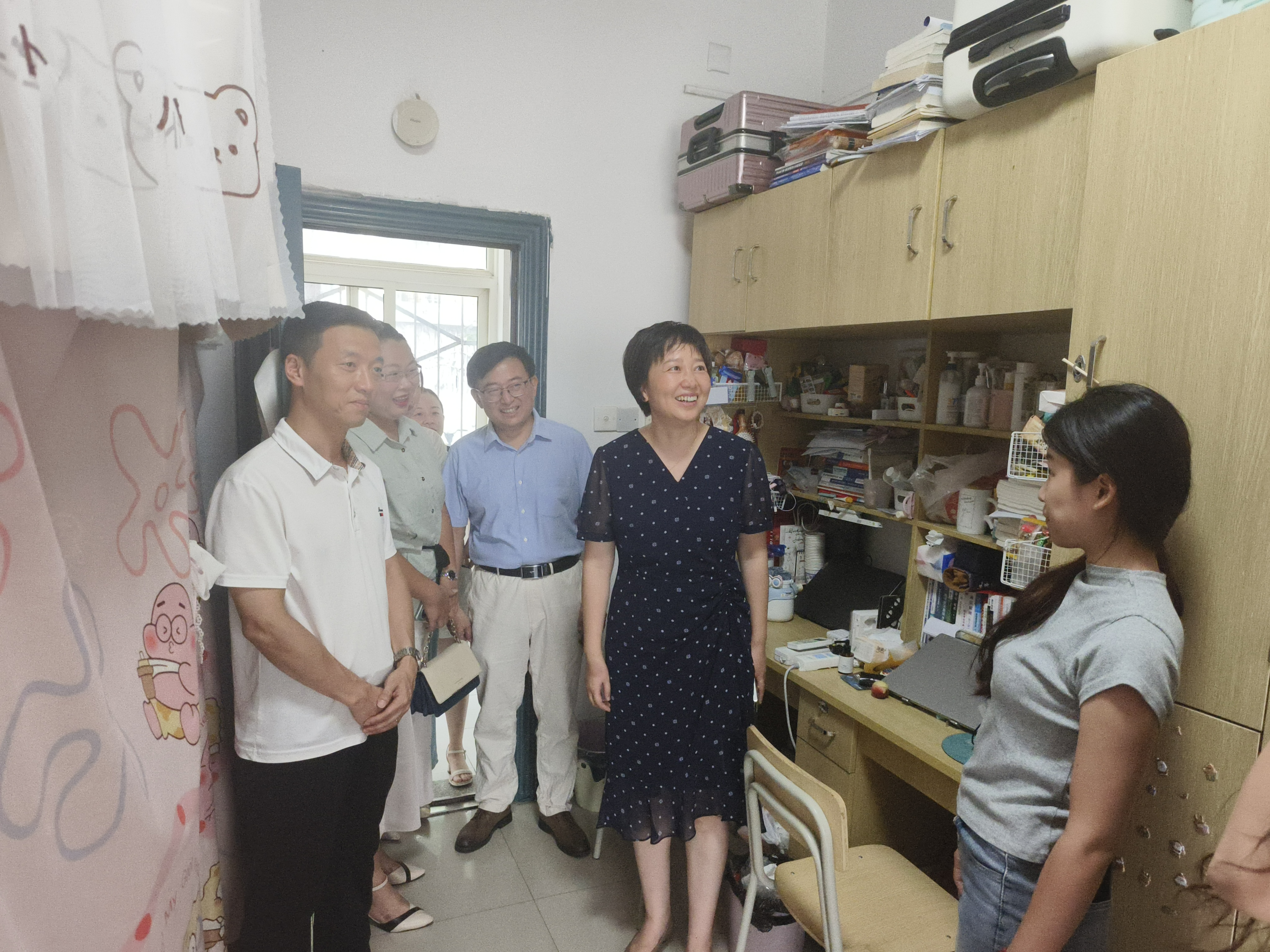7月25日下午,校黨委副書記周敏丹在學工處、后勤集團、校建處負責人的陪同下,深入學生宿舍走訪慰問,并前往北區宿舍改造施工現場進行調研指導。