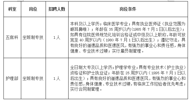 因醫(yī)院臨床工作需要,現(xiàn)面向社會(huì)公開招聘1名臨床醫(yī)生和1名臨床護(hù)士。有關(guān)事項(xiàng)公告如下: