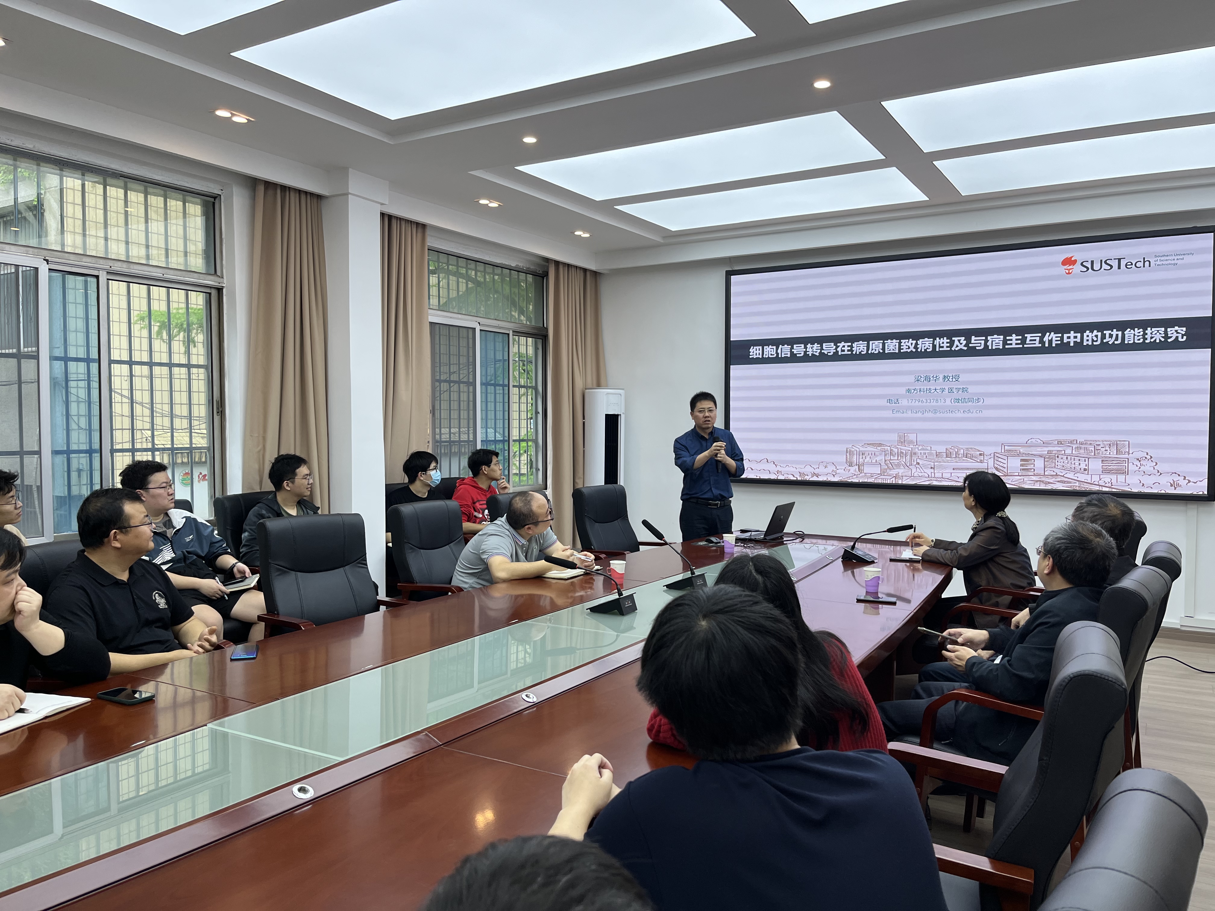 4月17日,教育部高層次青年人才入選者、南方科技大學(xué)醫(yī)學(xué)院梁海華教授應(yīng)邀回到母校,以《細(xì)胞信號(hào)轉(zhuǎn)導(dǎo)在病原菌致病性及與宿主互作中的功能探究》為題,為生物科學(xué)與工程學(xué)院師生帶來了一場(chǎng)精彩的學(xué)術(shù)報(bào)告。