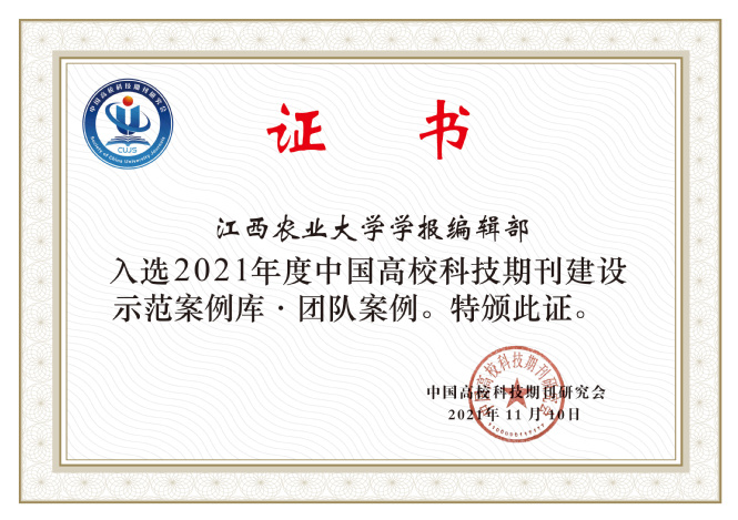 11月11-13日,中國(guó)高校科技期刊研究會(huì)第25次學(xué)術(shù)年會(huì)(線上+線下)順利召開。大會(huì)公布了首批 “中國(guó)高校科技期刊建設(shè)示范案例庫(kù)·編輯團(tuán)隊(duì)及編輯個(gè)人入庫(kù)案例”的遴選結(jié)果。我校期刊社《江西農(nóng)業(yè)大學(xué)學(xué)報(bào)》編輯部入選“2021年度中國(guó)高校科技期刊建設(shè)示范案例庫(kù)·團(tuán)隊(duì)案例”,張前鋒入選“2021 年度中國(guó)高校科技期刊建設(shè)示范案例庫(kù)·編輯案例”,這是我省唯一獲此榮譽(yù)的高校學(xué)報(bào)編輯部和編輯。