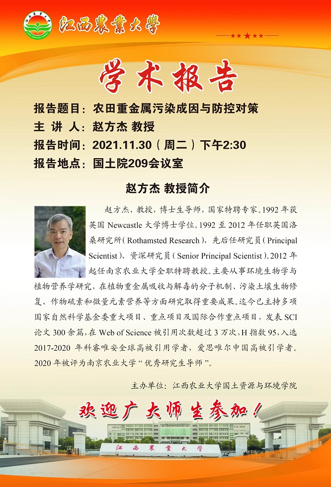 學術報告預告:農田重金屬污染成因與防控對策