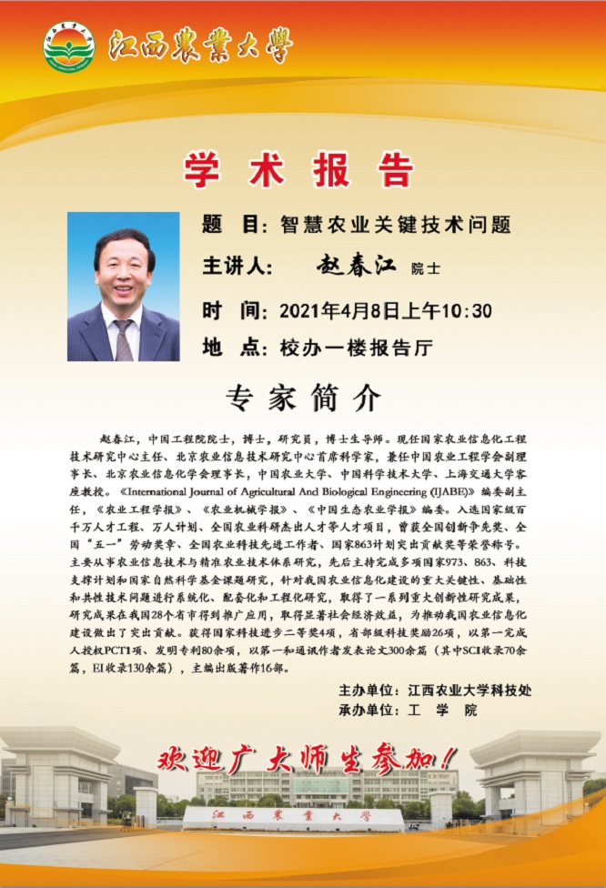 學(xué)術(shù)報(bào)告預(yù)告:智慧農(nóng)業(yè)關(guān)鍵技術(shù)問(wèn)題