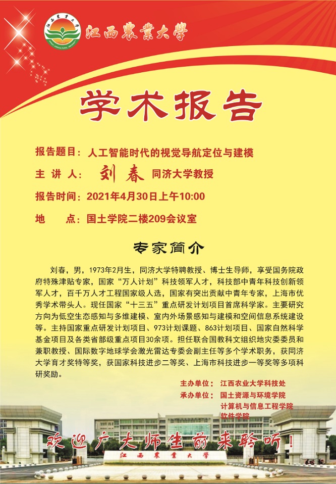 學(xué)術(shù)報(bào)告預(yù)告:人工智能時(shí)代的視覺(jué)導(dǎo)航定位與建模