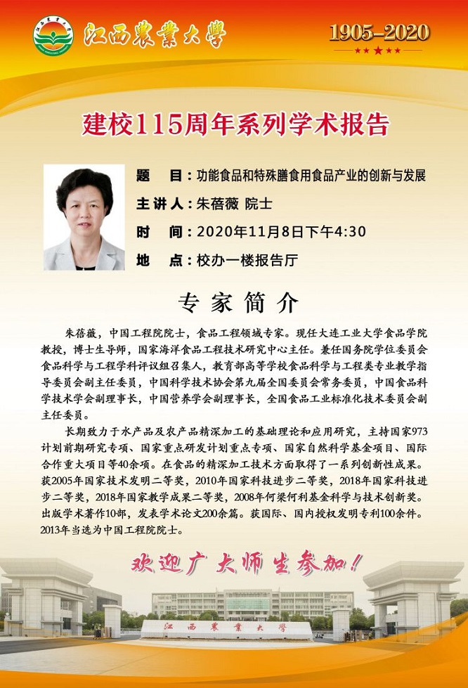 【建校115周年系列學術報告】預告:功能食品和特殊膳食用食品產業的創新與發展